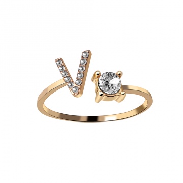 Warning: Invalid argument supplied for foreach() in /data/wwwroot/www.18so.com/system/model/goods.php on line 163 Unisex Gold Color A-Z 26 Letters Initial Name Rings Geometric Alloy wiht Rhinestone Open Cuff Finger Rings Engagement Jewelry V