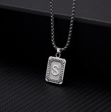 26 letters square brand pendant clavicle chain necklace (Square size: 1.5*2.8cm, chain length: 46+5cm) S